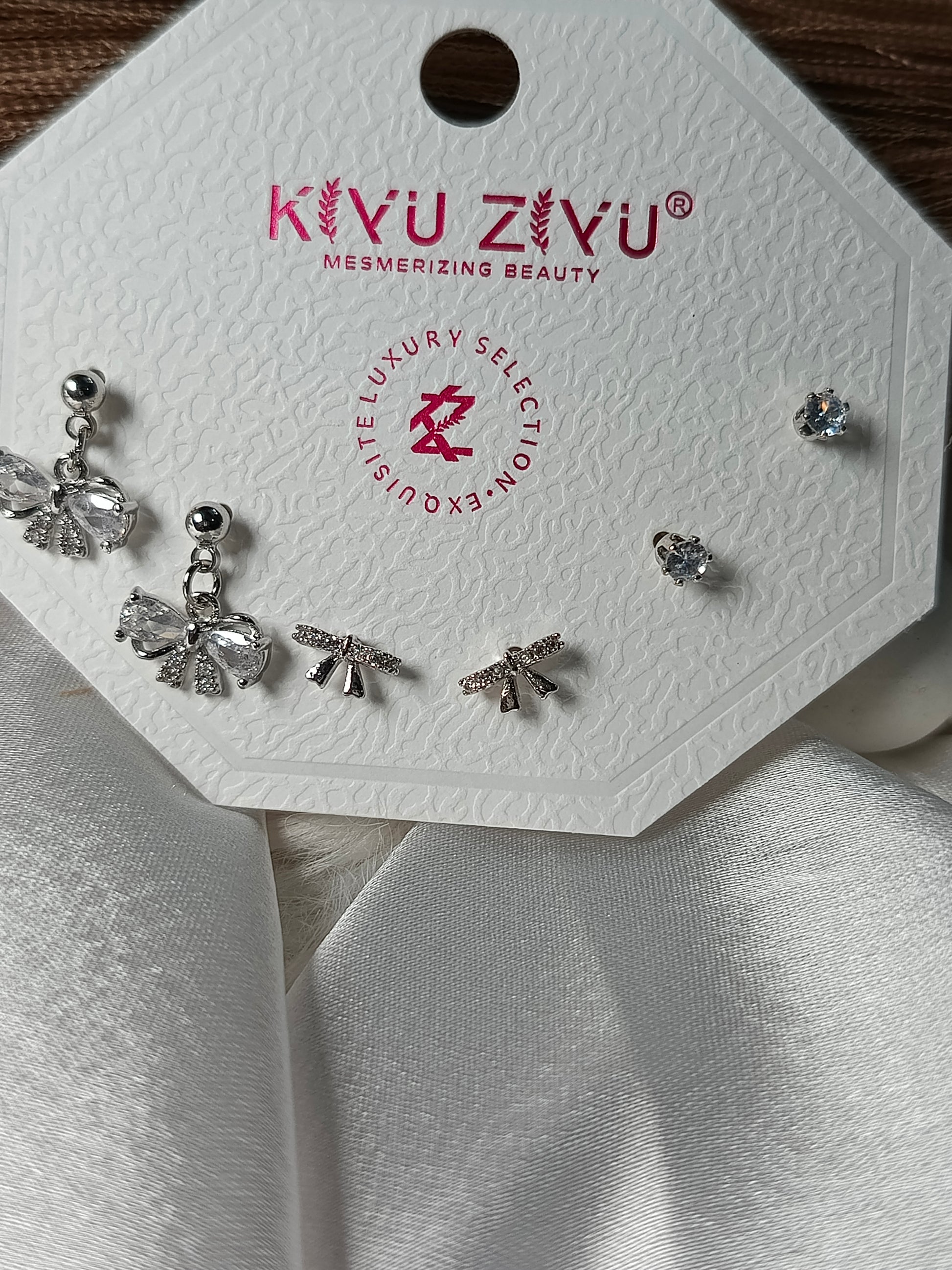 Dazzling Dangling Bows: These stunning earrings feature a brilliant, rhinestone-encrusted bow charm that dangles gracefully from a simple stud. They add a touch of glamour and movement to any outfit.