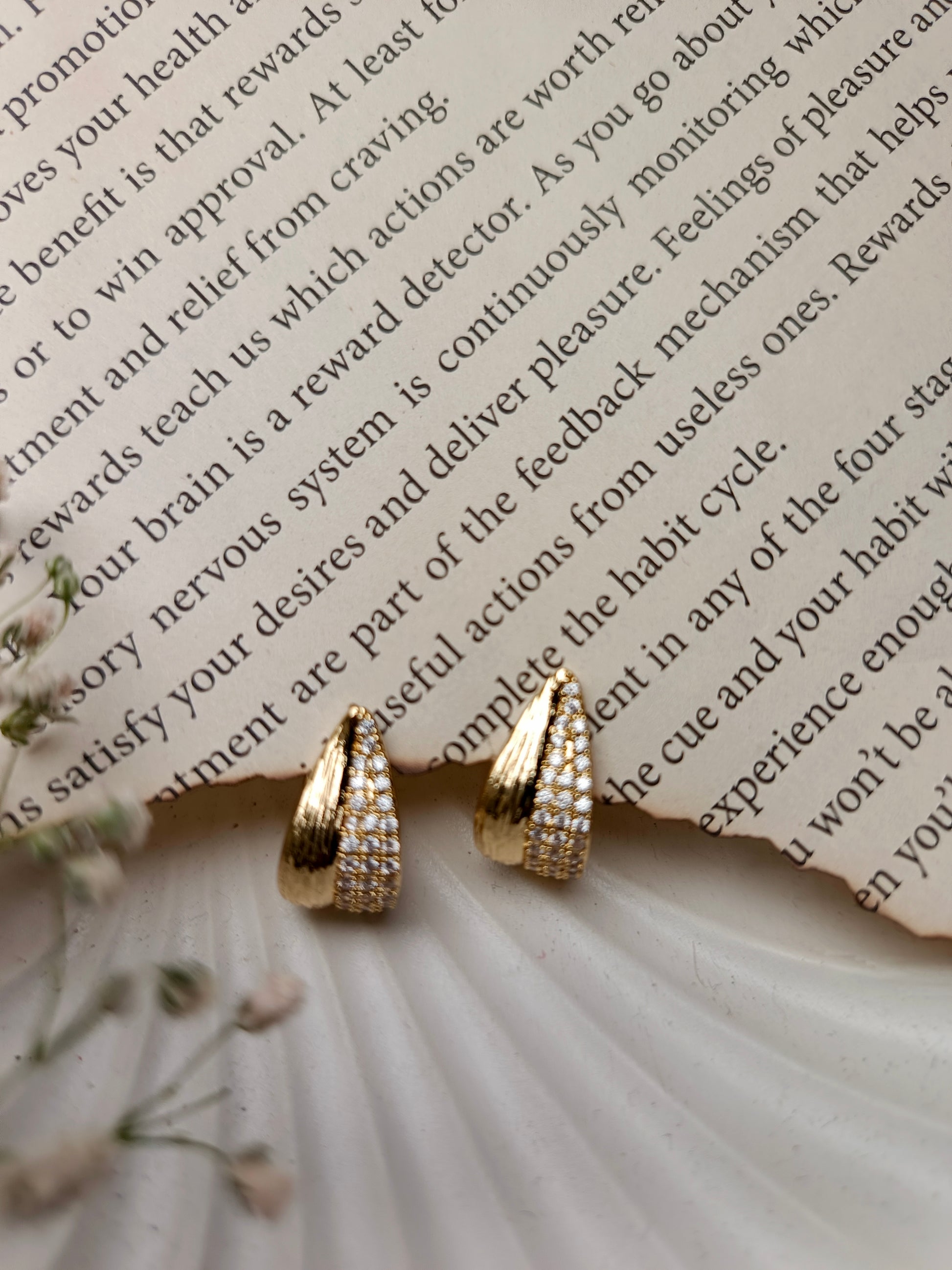 Elevate your look with these elegant and modern crystal hoop earrings. Crafted with a polished gold-plated finish, each earring features a dazzling array of micro-crystals that catch the light with every movement. The sleek, tapered design gives a sophisticated twist to the classic hoop, making them a versatile accessory for any occasion.